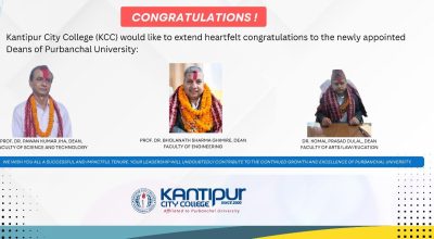 विराटनगर ,पढ्नेकुरा संवाददातापुर्वाञ्चल विश्वविधालयका विज्ञान तथा प्रविधि , इञ्जिनियरिङ्ग र मानविकी ,कानुन तथा शिक्षा संकायमा नयाँ डिनहरुको नियुक्ति भएको छ। नयाँ डिनहरुमा क्रमश : प्रो. डा. पवन कुमार…