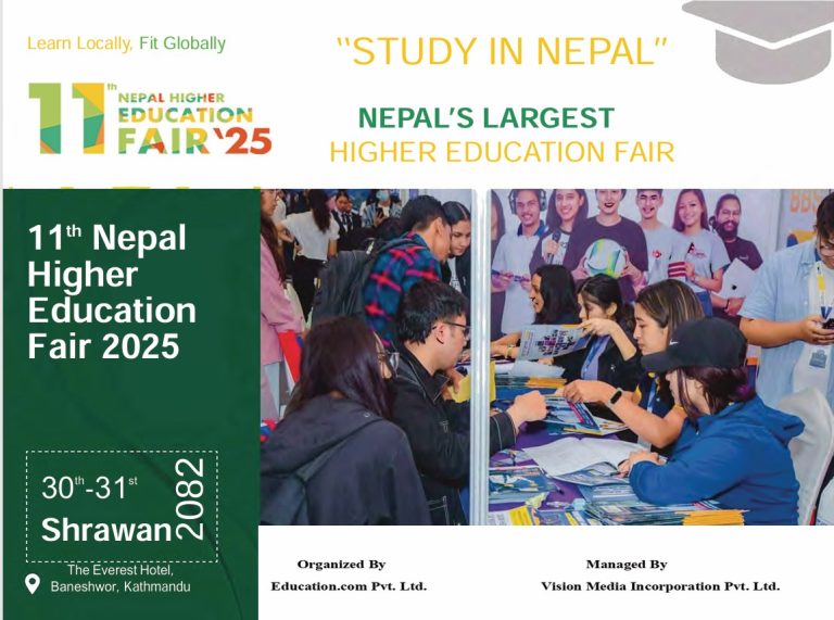 “स्वदेशमै शिक्षा सबैको ईच्छा “भन्ने मूल नाराका साथ यस बर्षको “नेपाल हाईअर एजुकेसन फेयर” को ११ औ संस्करण श्रावण ३० र ३१ गते सु सम्पन्न हुने भएको छ।