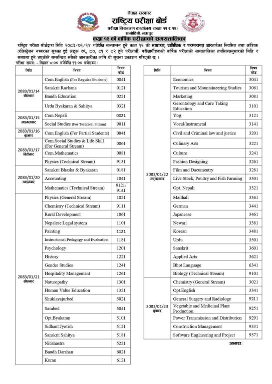 बैशाख १४ गते देखि सुरु हुने कक्षा १२ को बार्षिक परिक्षा बैशाख २७ गते सम्म चल्नेछ।